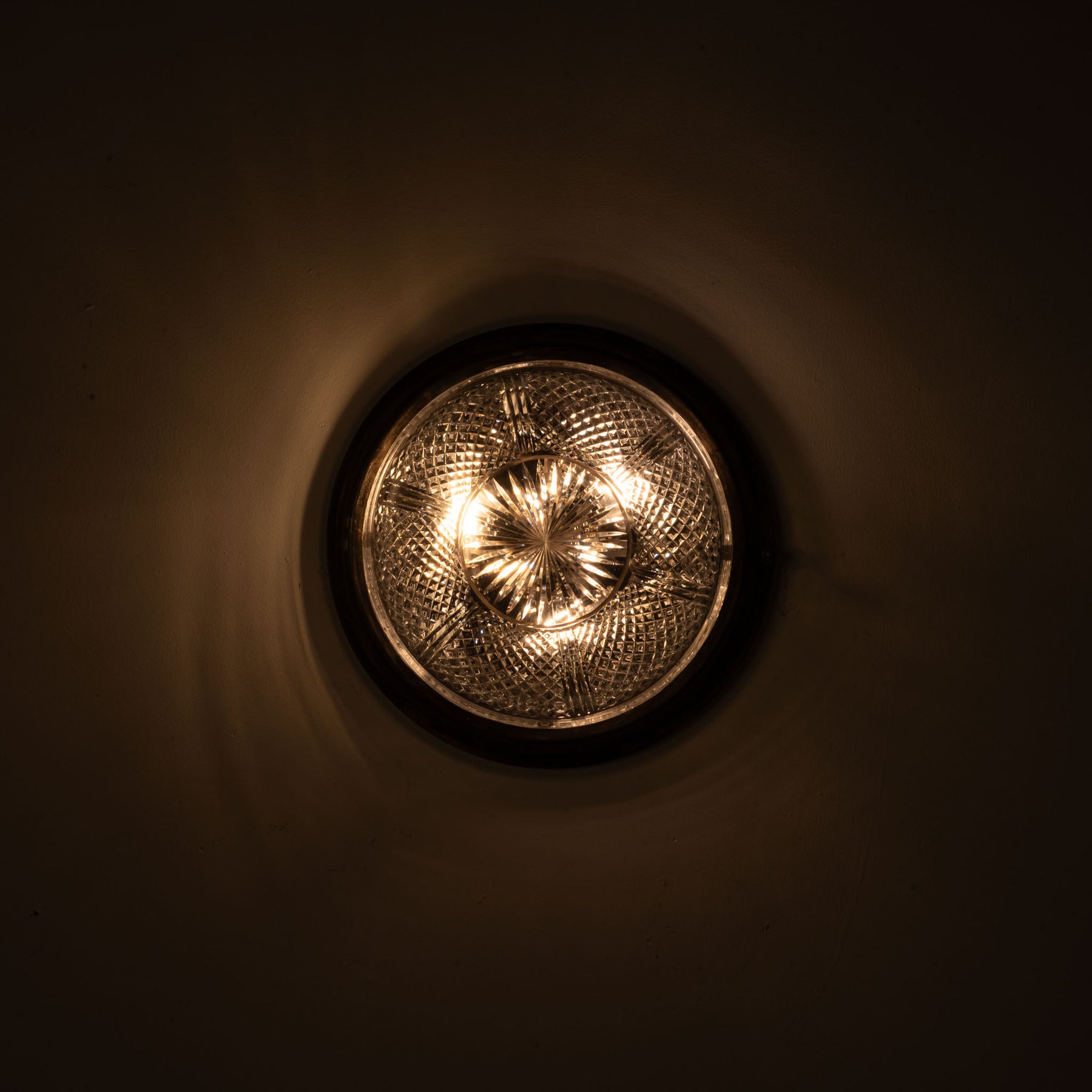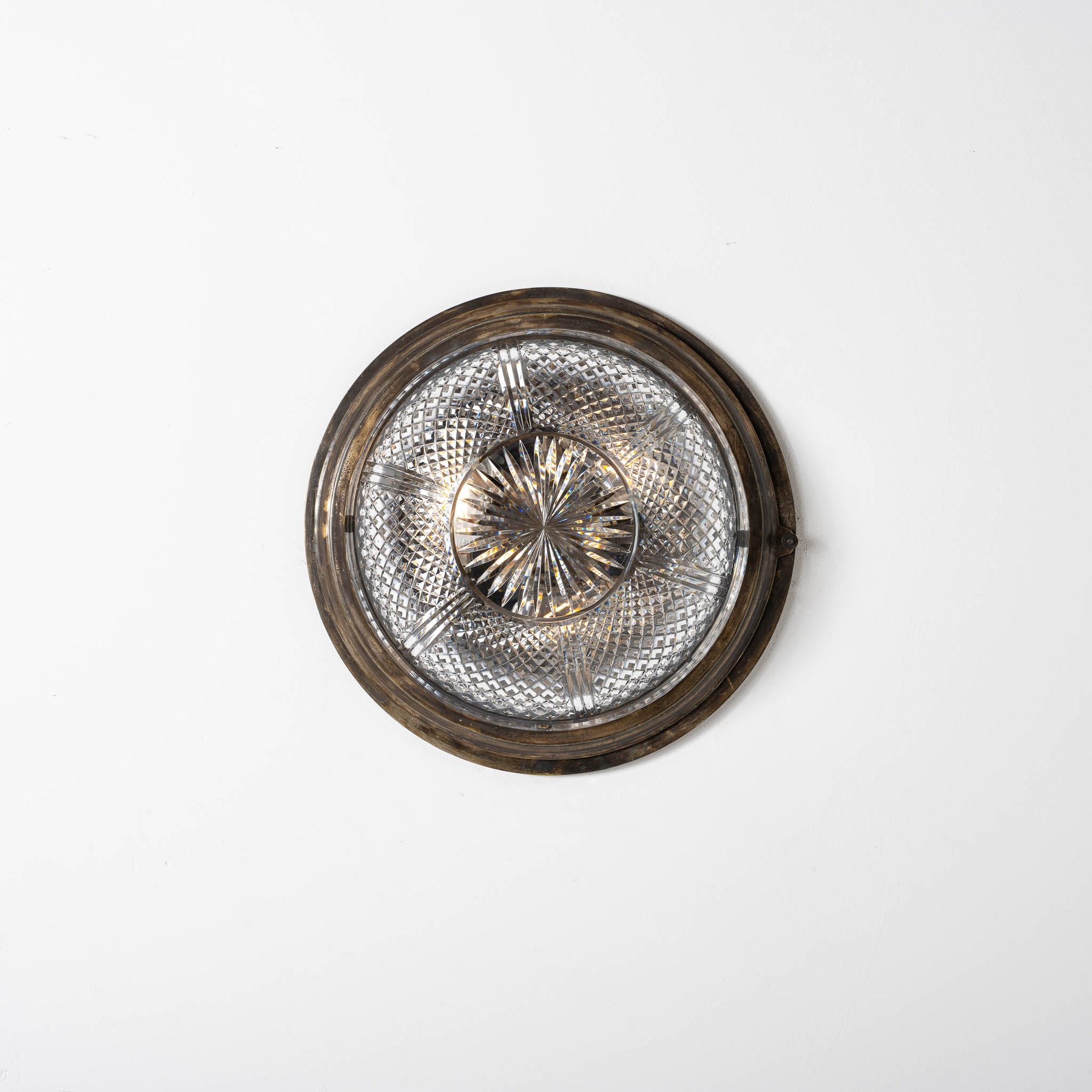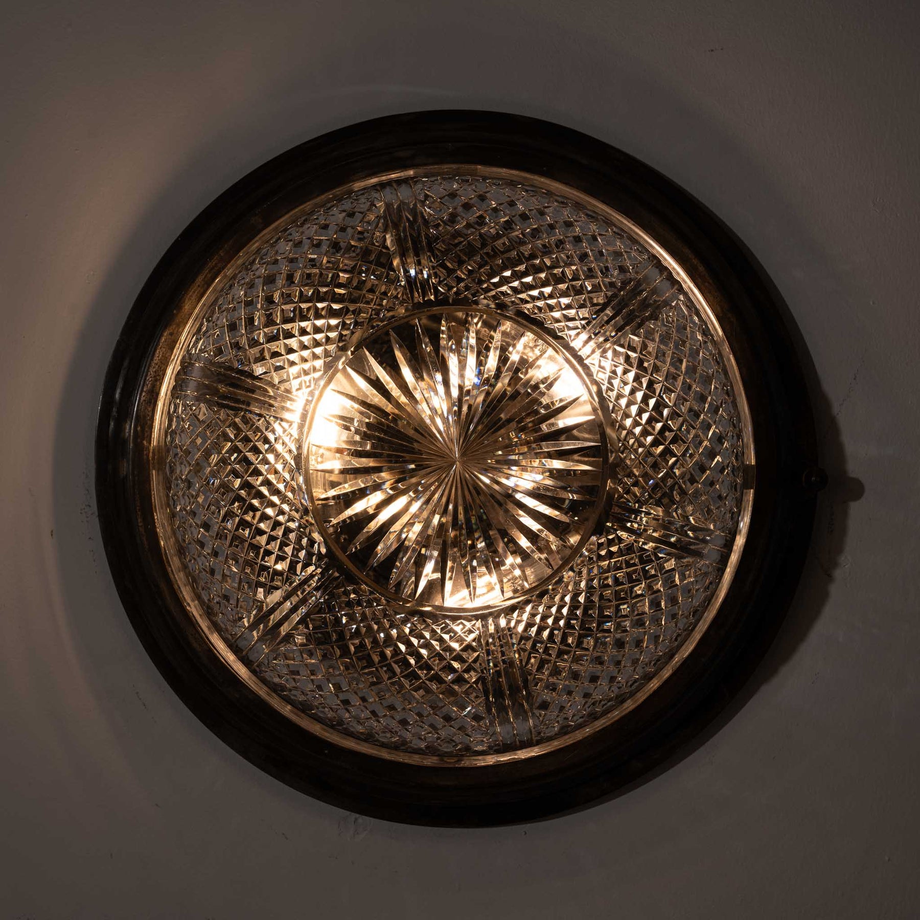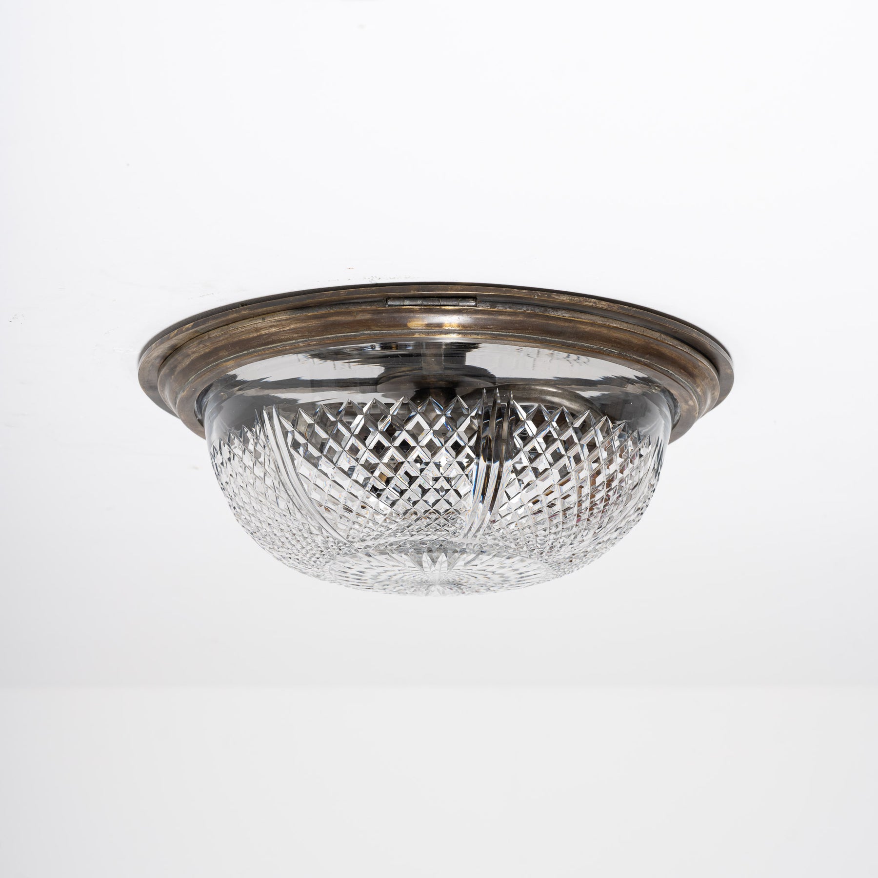 Exceptional English Antique Crystal Bowl Flush to Ceiling Light Fitting by GEC