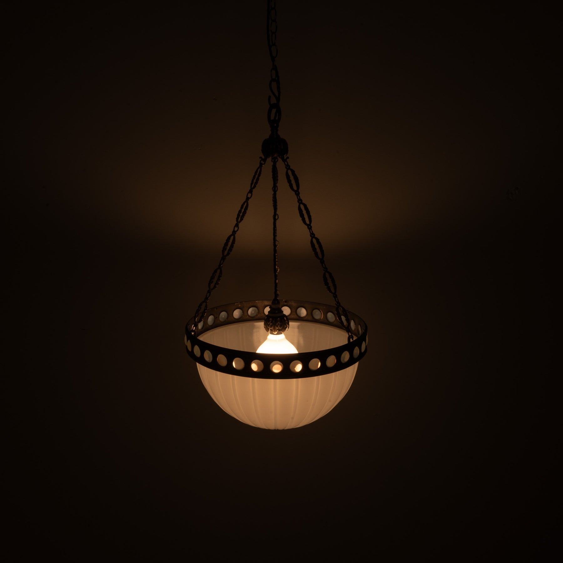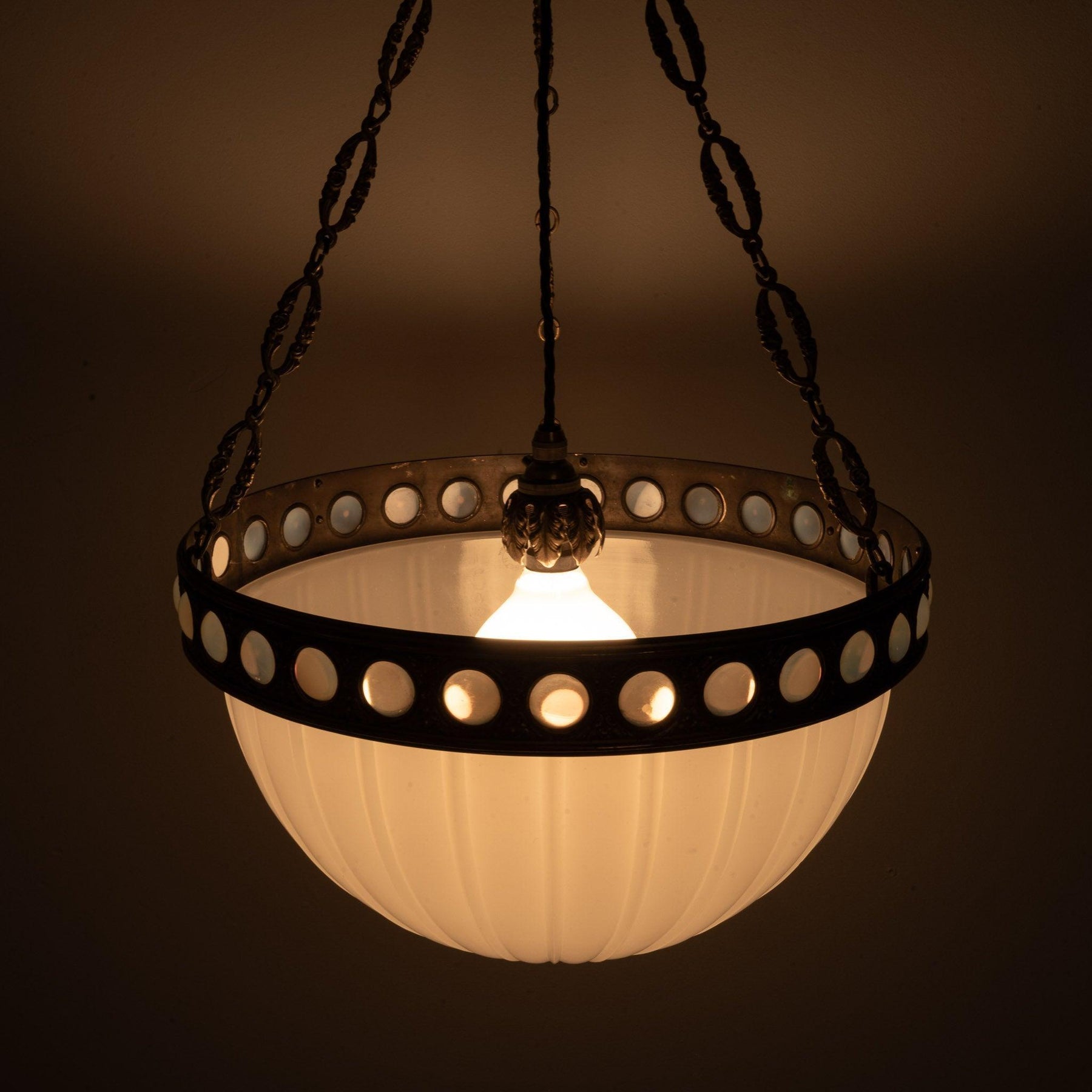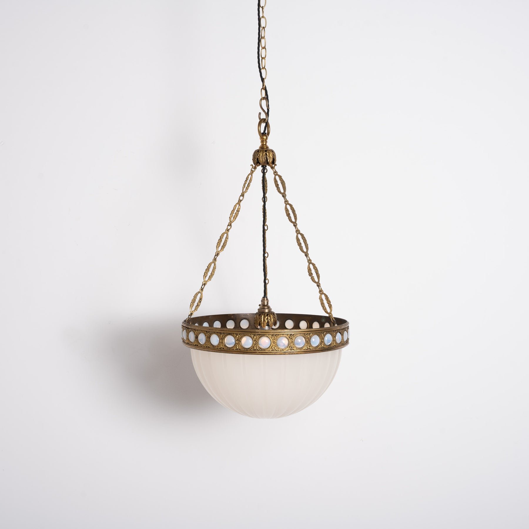 • Material: Moonstone glass with gilt brass fittings and opalescent glass insets
