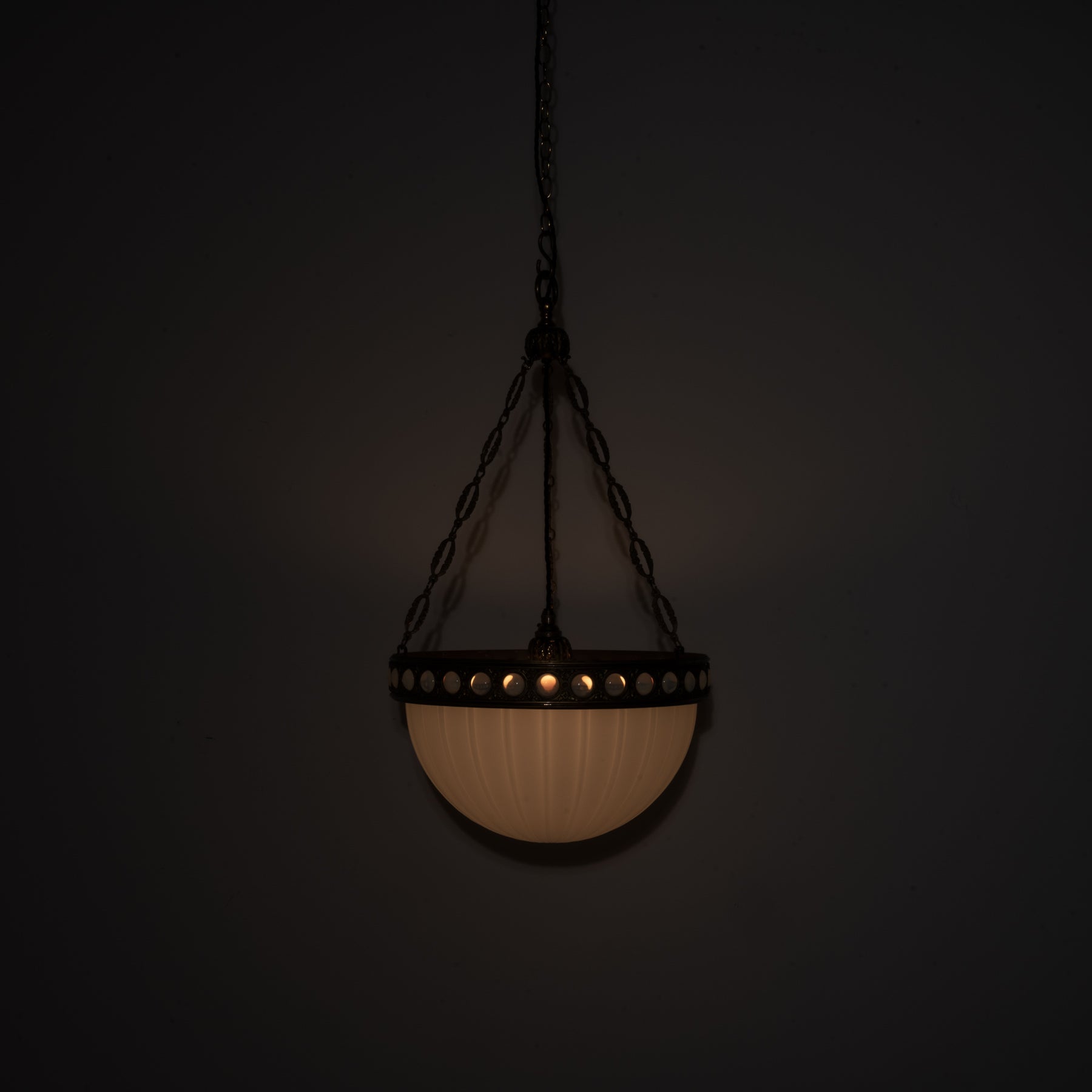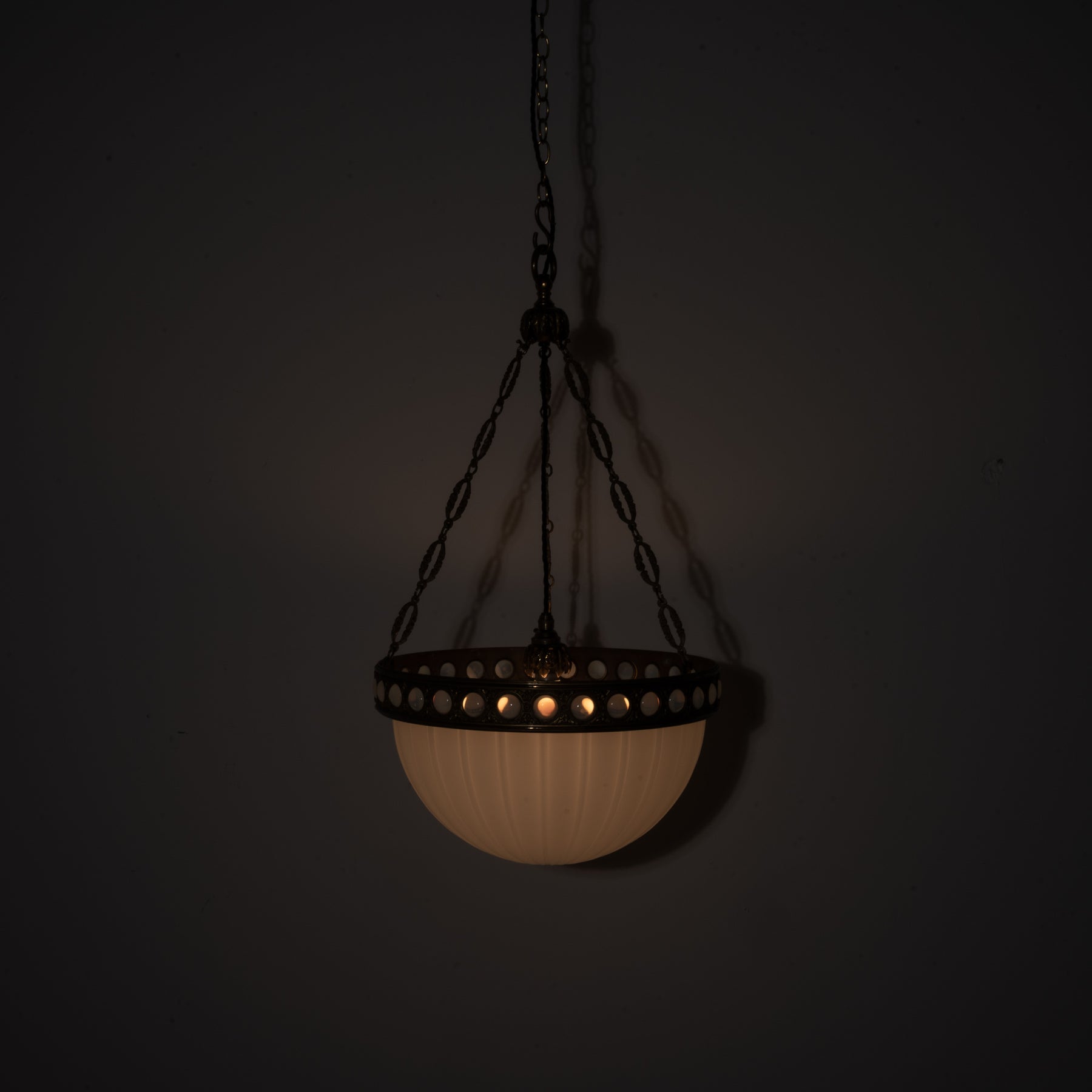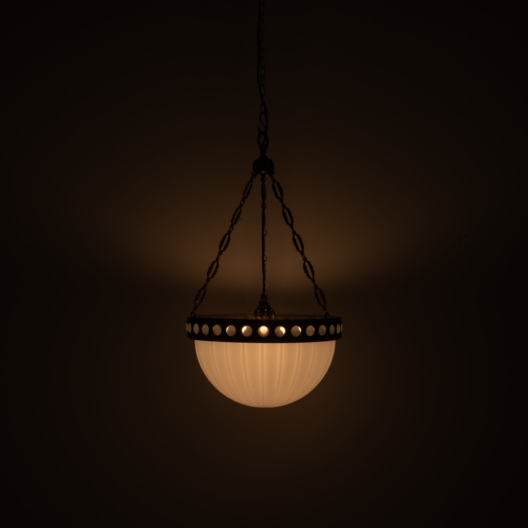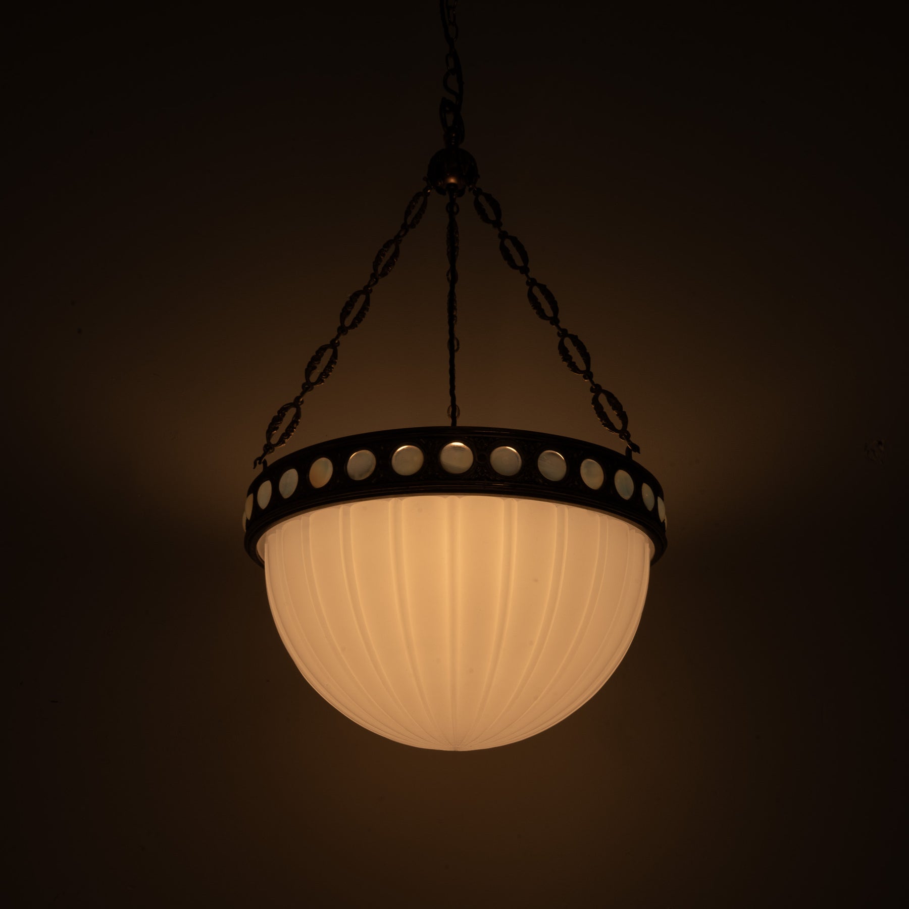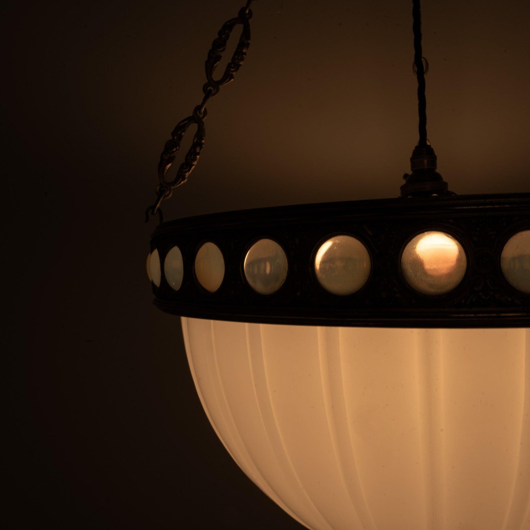 When lit, the Moonstone bowl emits a soft, diffused glow, while the opalescent insets come alive with subtle blue and white iridescence — a hallmark of early Art Nouveau lighting design. An exquisite statement fitting ideal for luxury interiors, country houses, or period restoration projects seeking a touch of refined decorative detail.