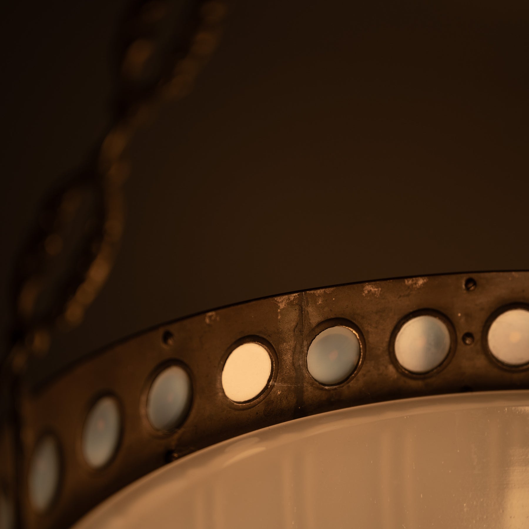 Exceptional & Rare Moonstone Plafonnier with Decorative Gilt Brass Ring with Opalescent Insets