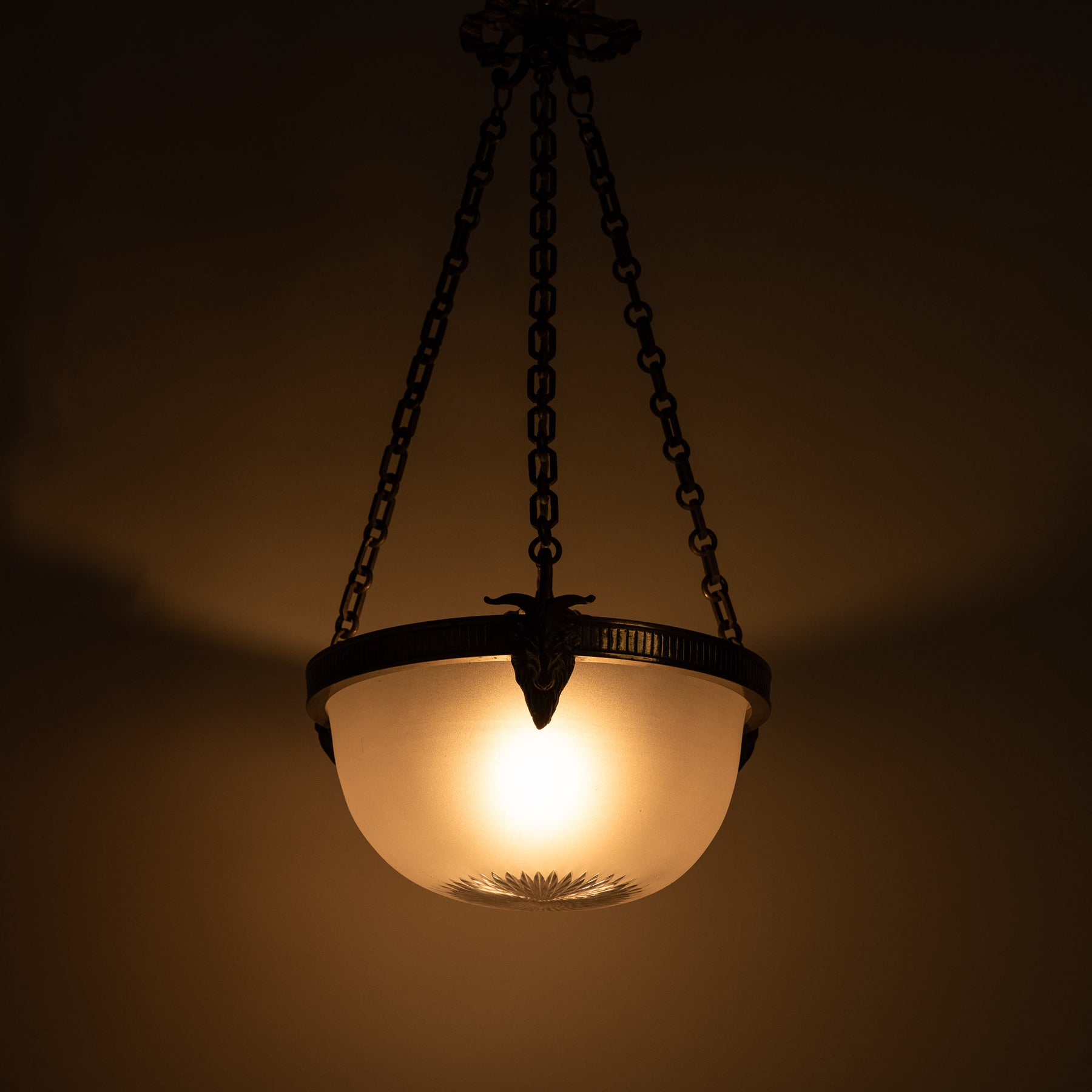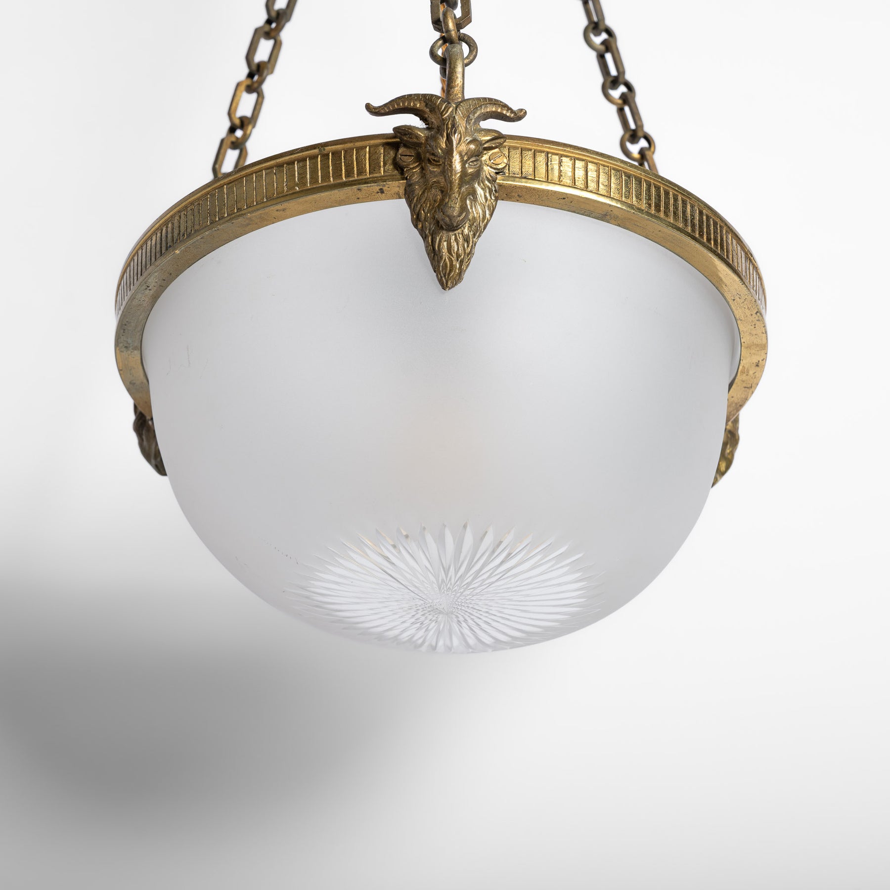 Antique Cast Brass Rams Head Frame by F & C Osler with Satin Crystal Bowl