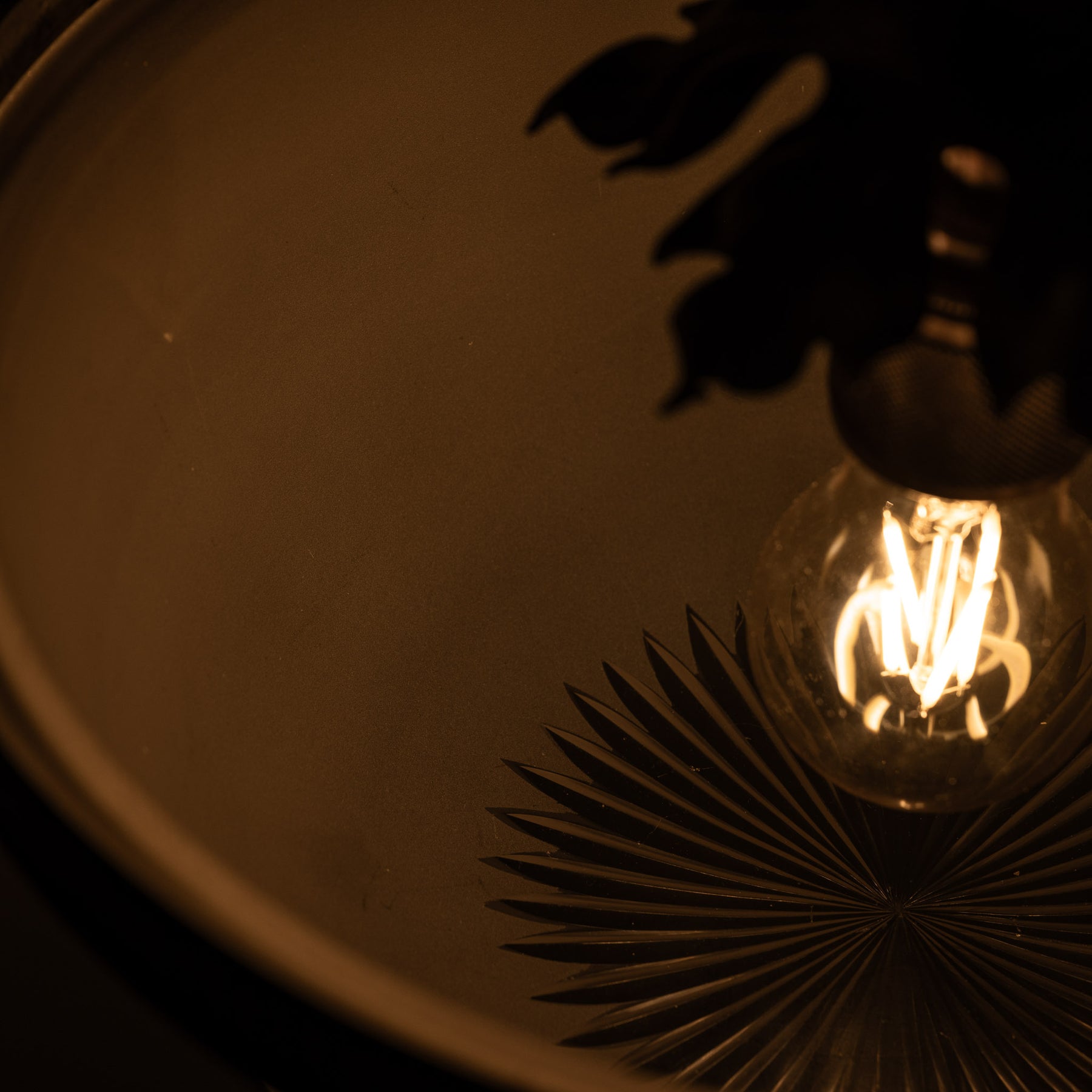 The combination of satin crystal and ornate cast brass creates a refined balance between decorative craftsmanship and functional lighting. When lit, the bowl emits a soft diffused glow while the cut detail produces a subtle starburst effect beneath the fitting.
