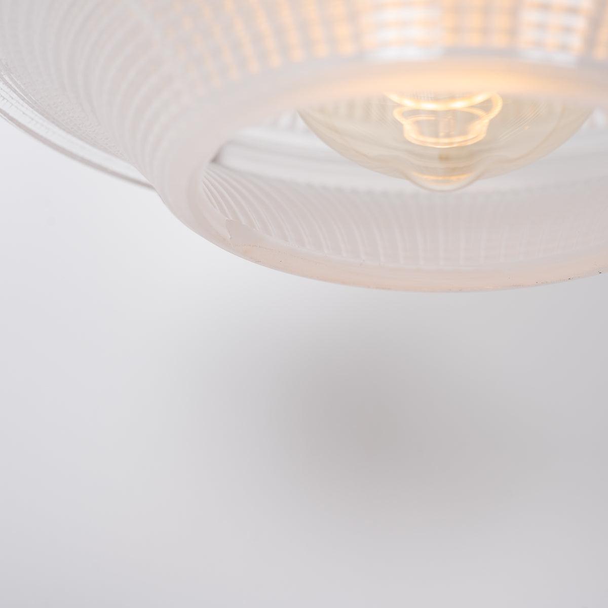 In addition to its practical qualities, vintage Holophane glass is highly sought after by collectors and enthusiasts of vintage and industrial design. The prismatic texture of the glass creates a unique visual effect that is both beautiful and functional, making it a popular choice for use in home decor and lighting fixtures. The vintage Holophane glass is often paired with high-quality metal fixtures, such as brass or cast iron, to create a look that is both elegant and industrial in style.