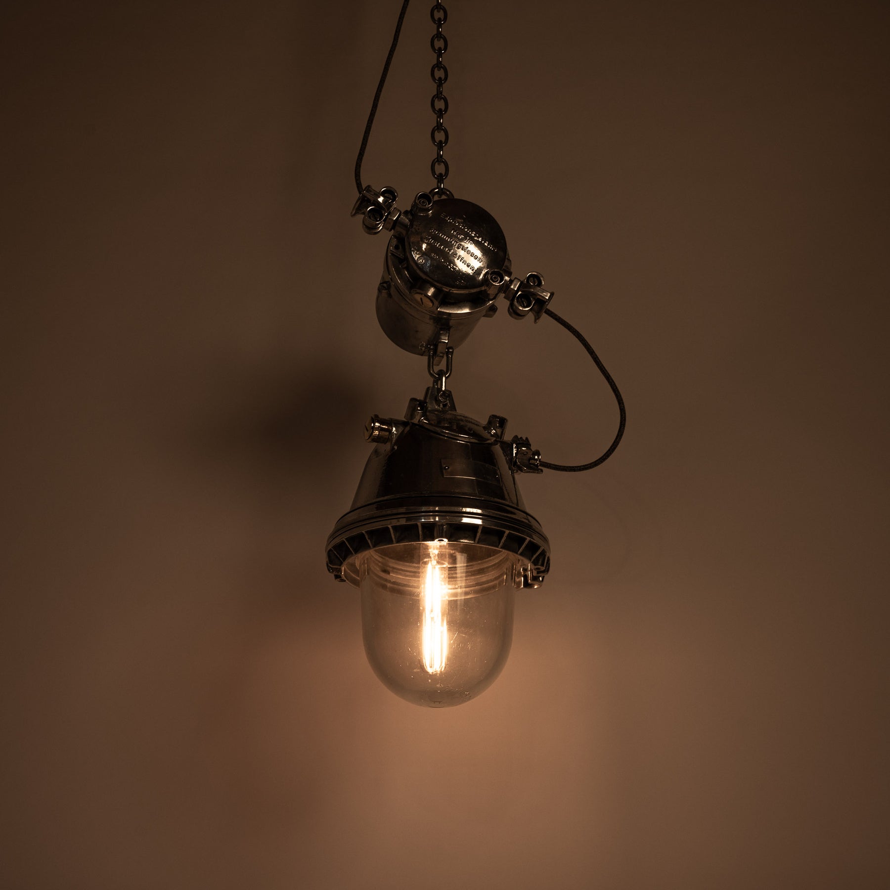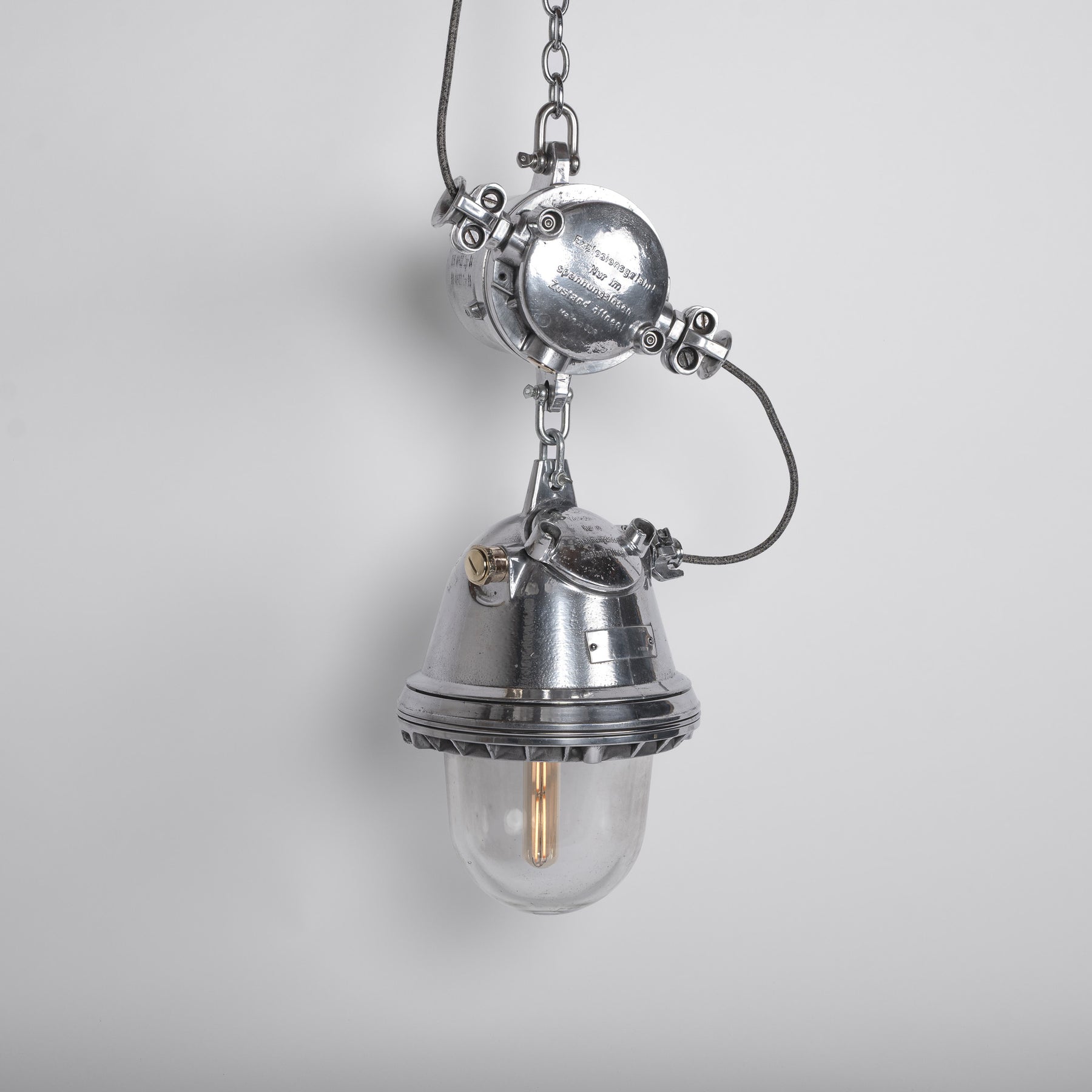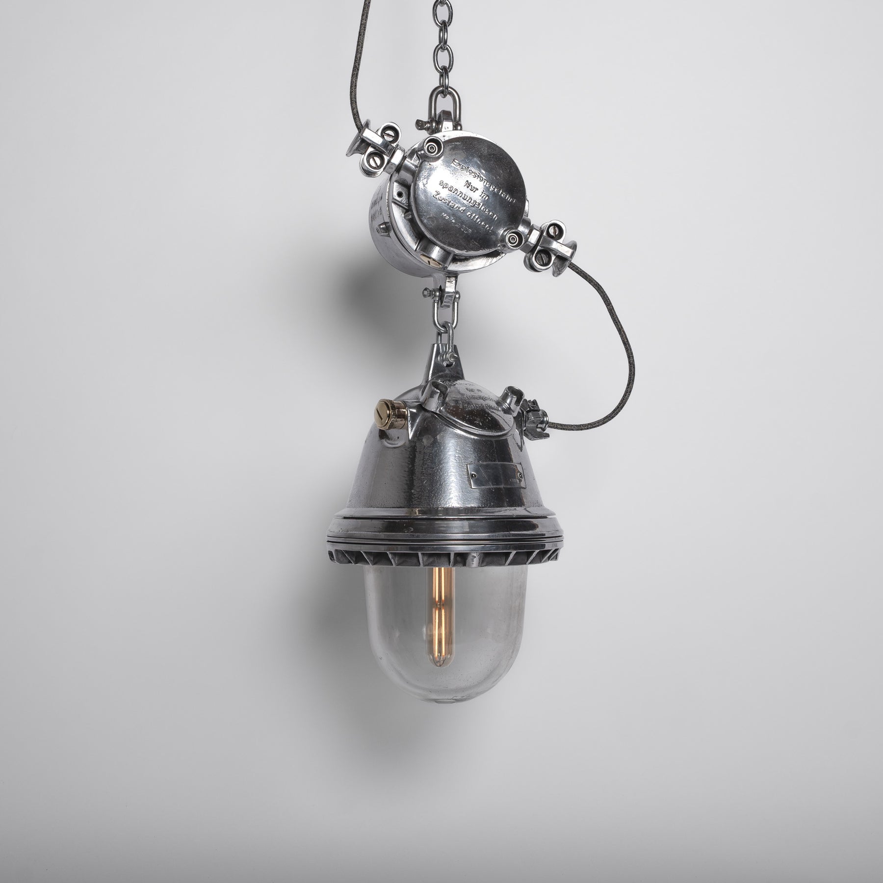 An exceptionally over-engineered explosion proof industrial pendant manufactured by EOW in the former German Democratic Republic.