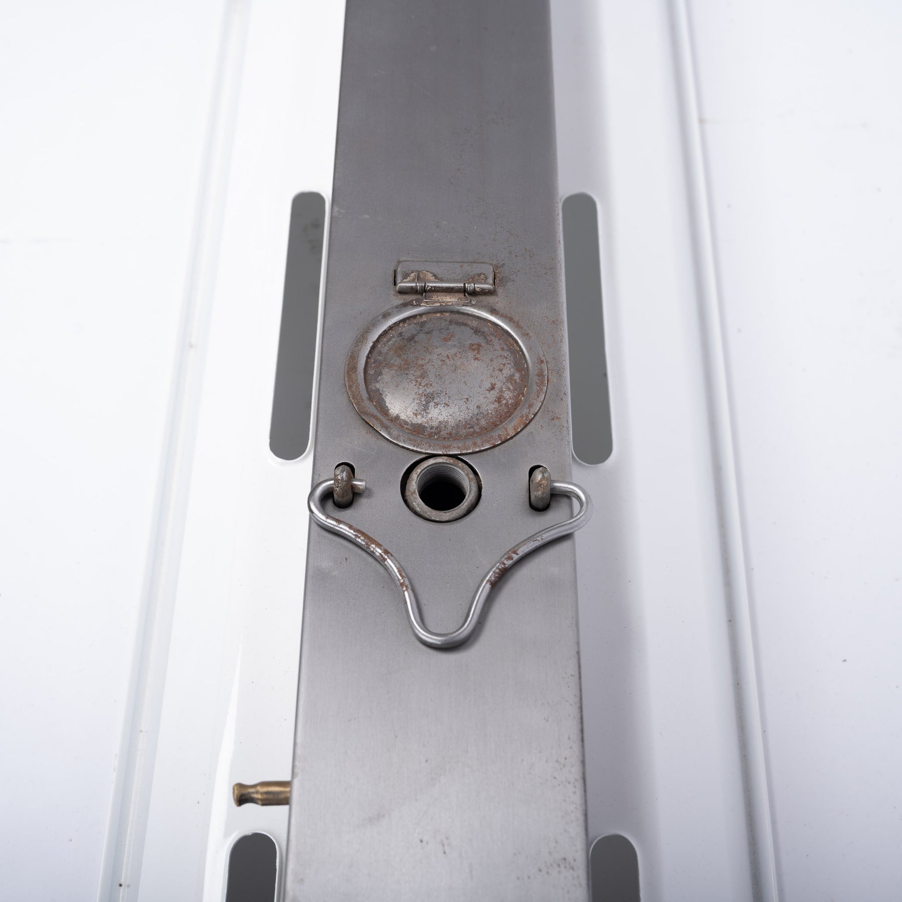 A disciplined, functional form with subtle radiused ends — classic mid-century British industrial design.
