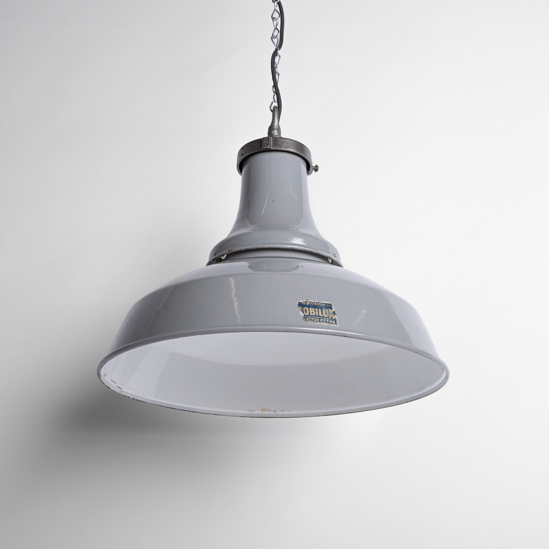 Extra Large Benjamin “Mobilux” Grey Enamel Industrial Pendant