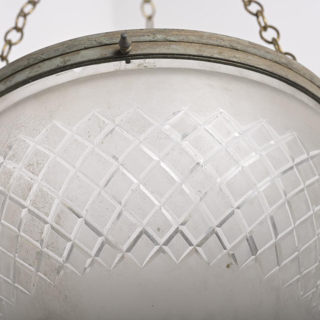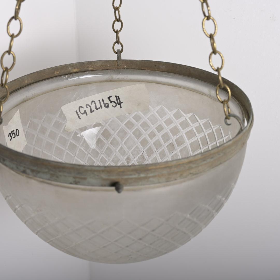 Condition: Very good structural condition. Note: There is a small chip to the glass rim, generally concealed by the brass gallery when installed.