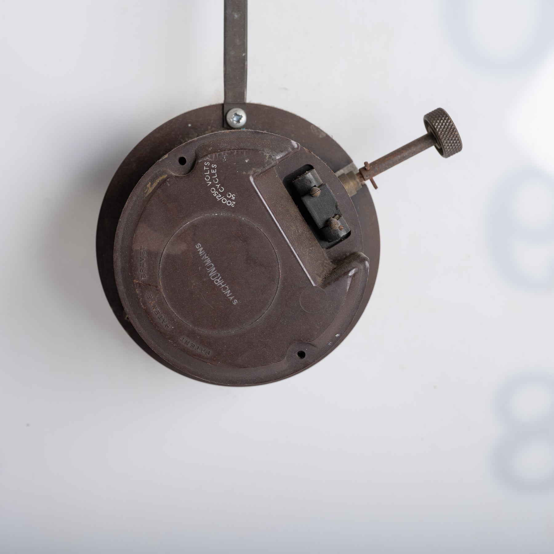 Original 220v mains-powered Synchronome synchronous movement present.