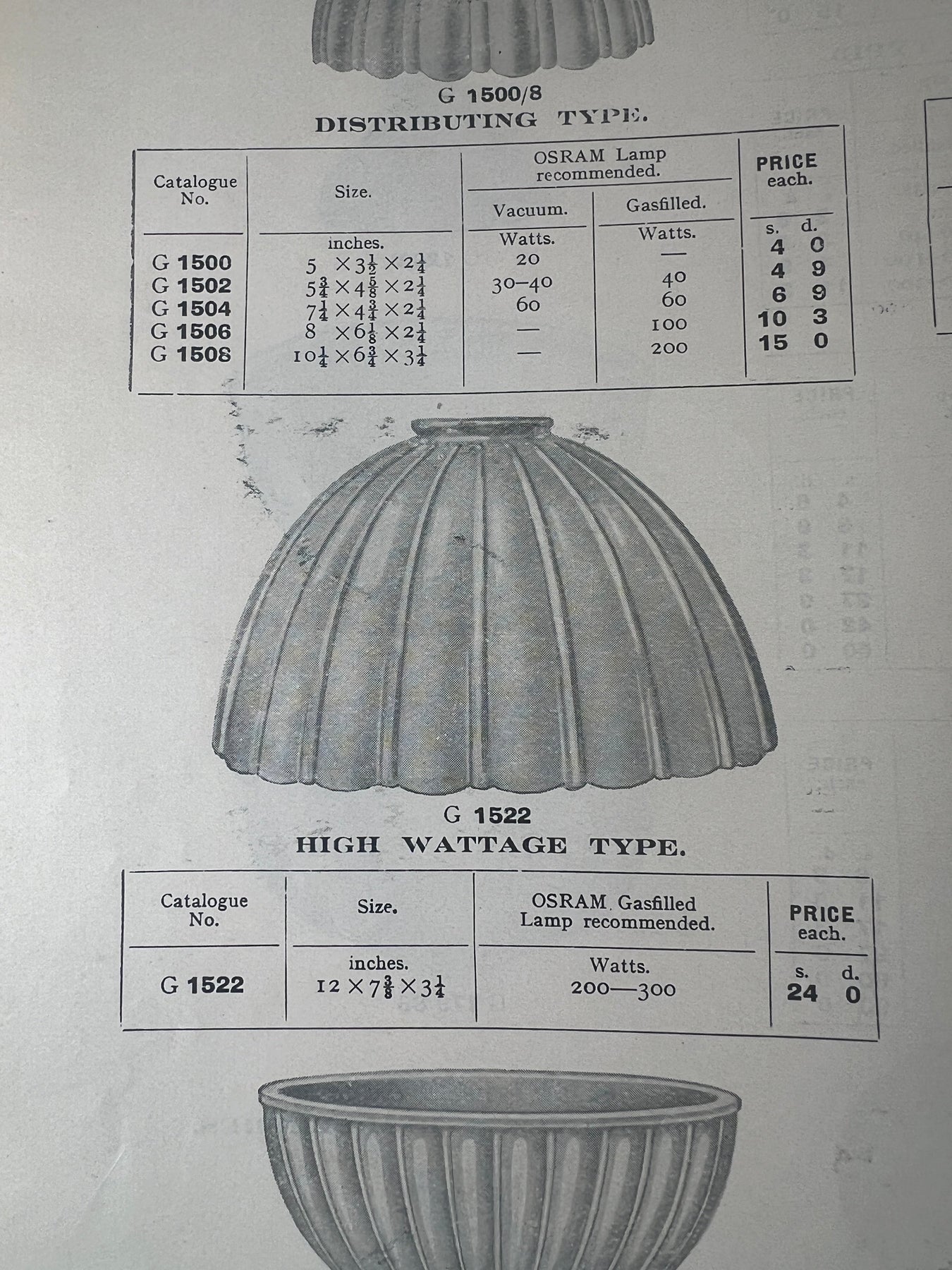 Rare oversized 12 inch diameter shades with elegant fluted design, tapered curve and scalloped edge to the thick quality moulded moonstone glass.